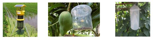 The use of baits and traps are traditional methods of preventing pests and insects from attacking the crop. Cut worms, Fruit flies are some of the typical pests that are managed using methods such as spreading baits, preparing traps (liquid trap, light trap, fly trap, pheromone traps).